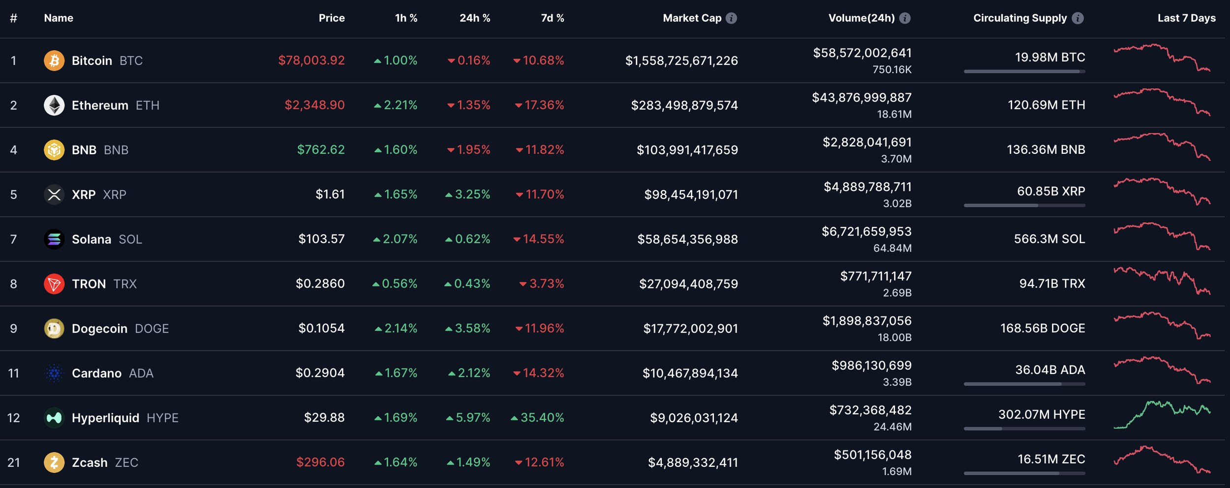 The crypto market pulled back sharply this week, finishing lower after a period of elevated volatility and heavy trading activity. Total crypto market capitalization fell over $300 billion (~10%), giving back a meaningful portion of recent gains as risk appetite cooled. Bitcoin (BTC) finished the week at $78,004 (-10.68%), while Ethereum (ETH) plummeted to $2,349 (-17.36%). Solana (SOL) also declined 14.55% to $103.57. Dogecoin (DOGE) saw heavier losses, falling 11.96% to $0.1054, and Cardano (ADA) ended the week down 14.32% at $0.2904. Hyperliquid (HYPE) was one of the few cryptocurrencies to see gains, surging 35.40% to $29.88. While the drawdown was significant, the market avoided a disorderly sell-off, instead moving through a controlled de-risking phase following a strong prior rally.
